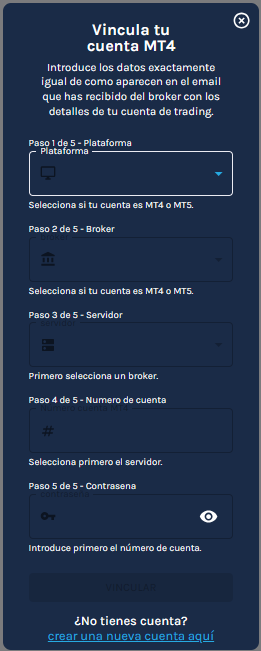 El conector es una herramienta integrada dentro de la plataforma web de Tradeasy que te permite vincular tu cuenta de trading de MT4 con tu cartera de robots. Desde aquí puedes: